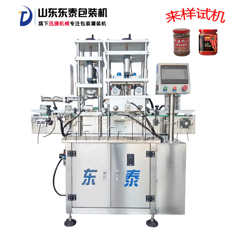 該機借鑒國外技術,結合國內客戶需求研發而成。該機集自動進瓶、自動理蓋上蓋、自動抽真空旋蓋、自動出瓶于一體,生產效率高,運行穩定可靠,是食品醬料、飲料、保健品等行業馬口鐵三(四)旋蓋理想的抽真空旋蓋設備。