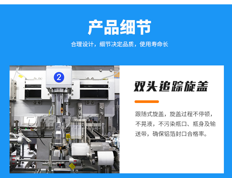 2、品質高:跟隨式旋蓋,旋蓋過程不停頓,不晃液,不污染瓶口、瓶身及輸送帶,確