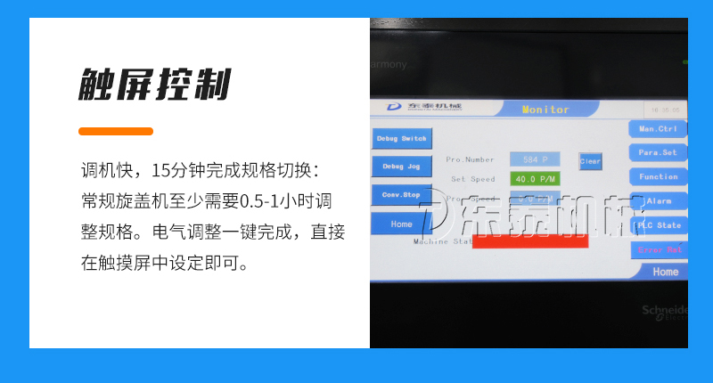 7、調機快,15分鐘完成規格切換:常規旋蓋機至少需要0.5-1小時調整規格。