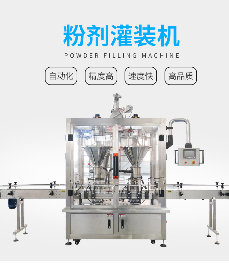 自動定量粉劑灌裝機該機是一種經濟型粉劑和小顆粒自動灌裝機,可以完成瓶的自動定位,灌裝和計量。它由一個灌裝頭,一條連接帶和—個定位裝置組成?;虿竭M)電機,PLC和蝕摸屏控制,操作簡便,穩定性高。它可以與開瓶器,封蓋機和貼標機結合形成一祭完整的灌裝線。適用于包裝粉末和小顆粒物料,例如粉末,小顆粒,獸藥,葡萄糖,調味品,體飲料,碳粉,滑石粉,農藥等。