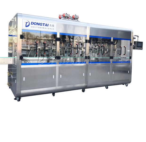 600KG,內(nèi)部設(shè)有阻擋板,避免油品輸入過程油品外冒,同時(shí)保證灌裝精度;儲(chǔ)油箱位置設(shè)在灌裝機(jī)頂部,自帶可視液位計(jì),頂部箱蓋大包圍設(shè)計(jì)并且可以打開,具備排氣功能(排出氣泡等);灌裝頭整體上升方式平穩(wěn),不產(chǎn)生震動(dòng),高度及寬度可調(diào)。