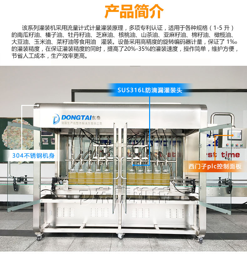 適用于各種規格(1-5升)的南瓜籽油、榛子油、牡丹籽油、芝麻油、核桃油、山茶油、亞麻籽油、棉籽油、橄欖油、大豆油、玉米油、菜籽油等食用油灌裝。